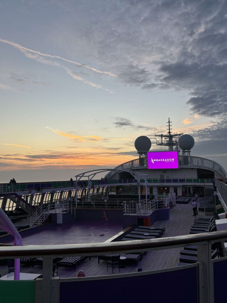 The day at sea on the way back to Tilbury was a perfect opportunity to relax and enjoy the stunning sunset.