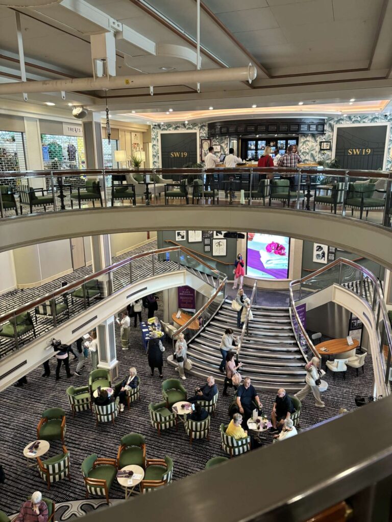The sailaway party was a great way to start the cruise. After the party, I went to explore the ship and I was pleasantly surprised. The main atrium was stunning, with its high ceilings and beautiful decorations. The observatory was a great place to relax and enjoy the views, and the raffle bar was a fun place to meet new people. Overall, I felt that the public areas were extremely nice. Each of them offered a relaxed atmosphere where I could unwind and enjoy my time on the ship. Take a look at the pictures below to see the main atrium, the observatory, and the raffle bar.