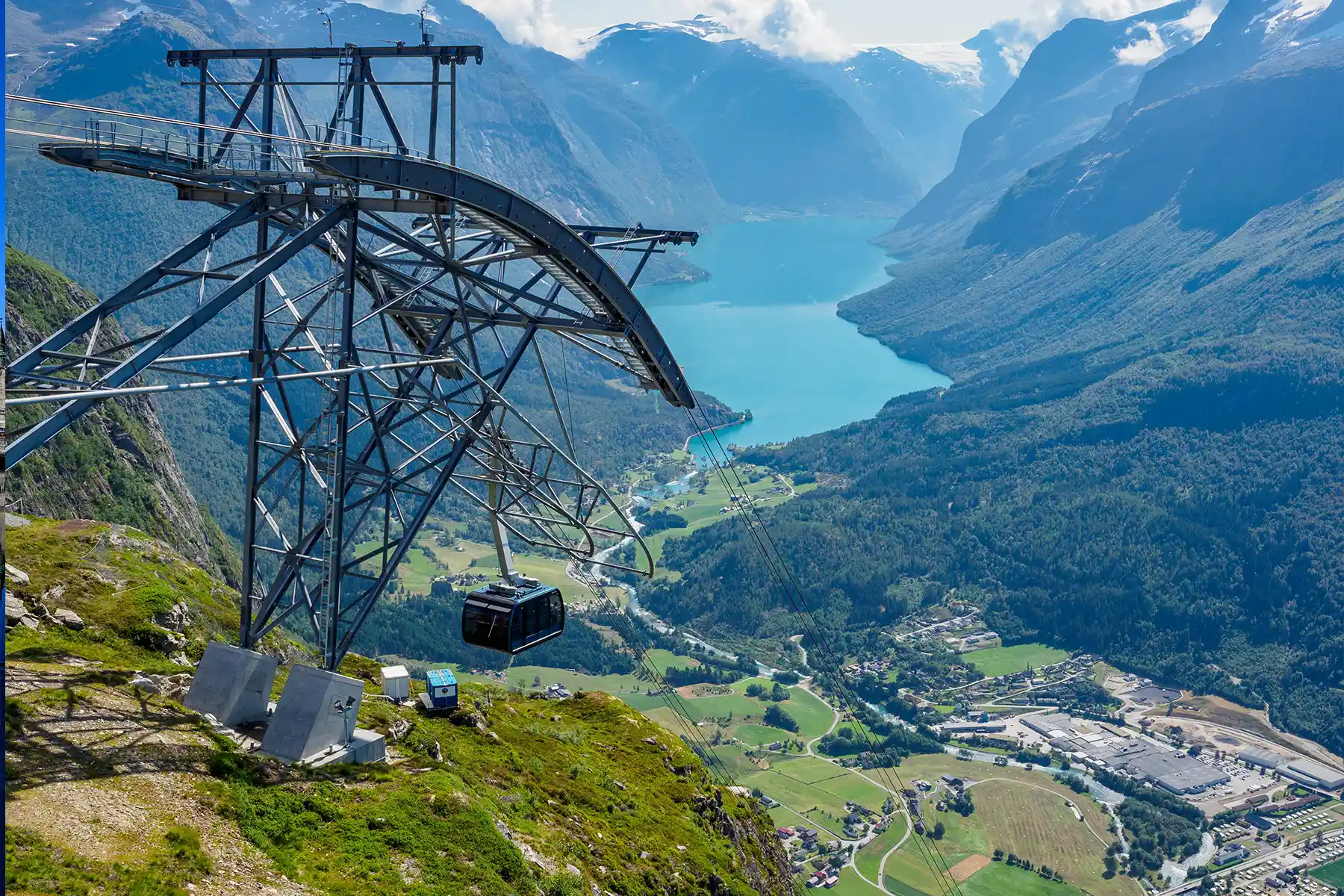 See the aqua blue ice of the Jostedal Glacier cascading down the stunning Oldedalen Valley, as… More