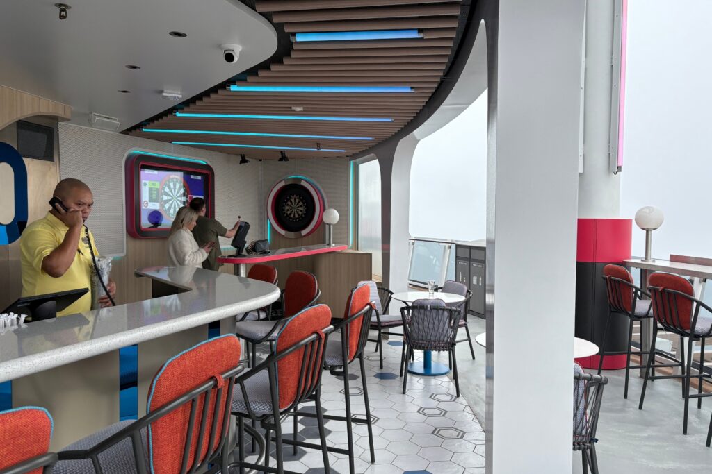 Here’s a look at Bullseye Bar on board Norwegian Aqua. It’s a casual, fun spot themed around darts, with plenty of seating and a laid-back atmosphere — great for grabbing a drink and enjoying a few games with friends or fellow guests.