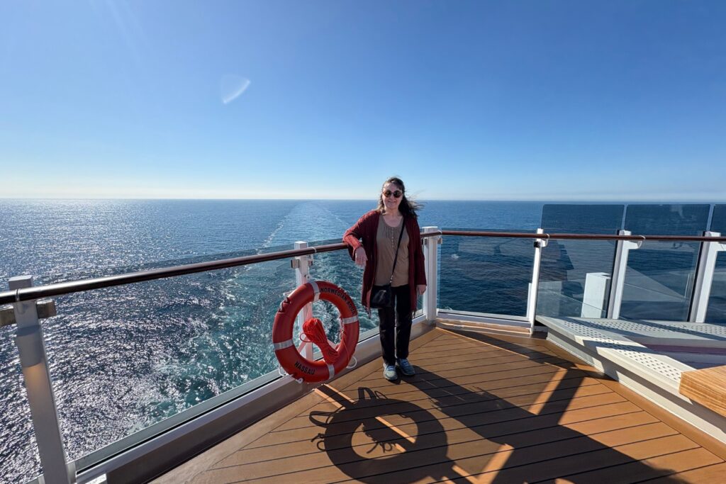 Here’s a photo from the top deck of Norwegian Aqua. It’s a nice open space with great views of the ocean and plenty of seating to relax. Whether you’re taking a stroll, enjoying a bit of sunshine, or just watching the world go by, it’s a pleasant spot to spend time while at sea.