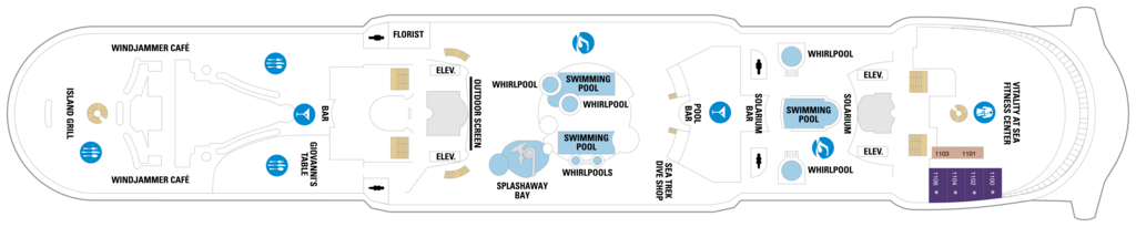 The pool deck is the place to be. And each ship has several to choose from. Bask in the sun or relax in the shade while you sip a cool tropical cocktail and enjoy the complimentary loungers and live music.