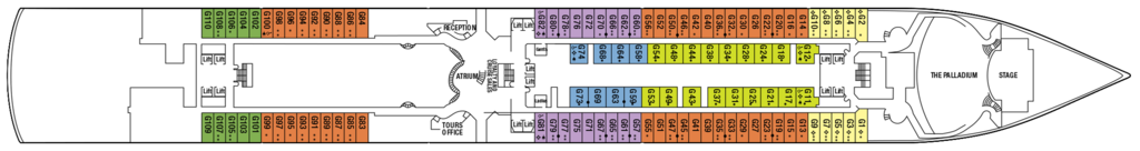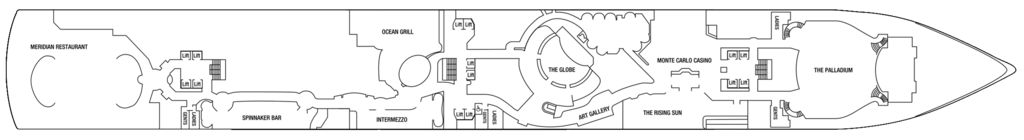 Arcadia’s impressive three tier theatre, The Palladium, is located at the very forward end of the ship. Inside you will find comfortable theatre-style-seating arcs around the stage in three tiers, affording you excellent views of the stage. In The Palladium, the drama is not confined to the stage, as the décor adds a theatrical touch of its own. A rich colour scheme of royal blue, violet, midnight blue and silver sets off the main attraction – the shows themselves! Suede and crushed velvet adds an opulent touch, ensuring The Palladium has all the magic and anticipation of the West End!