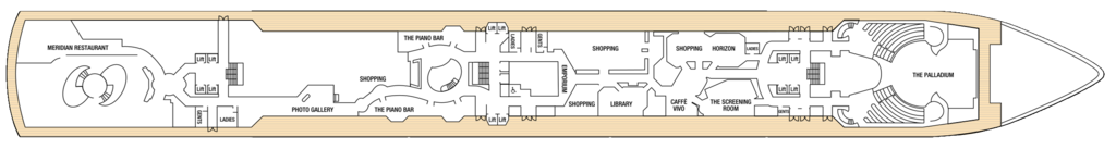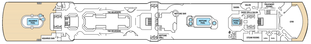 Aquarius pool (Lido deck) – A good place to relax during the day and enjoy ocean views at sunset. Also features two whirlpool spas. Poolside refreshments are available.