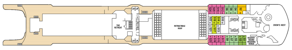 Perched high in the ship, Crow’s Nest offers breathtaking ocean views. By day, unwind with classic cocktails and a book in this serene haven, while evenings transform the venue into a sophisticated escape with live piano music, sultry vocals and a stylish ambience. Perfect for daydreamers and night owls alike!