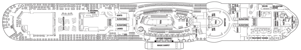 Welcome to one of the best places to take in views from the water’s edge. The Magic Carpet® is a cantilevered, floating platform that reaches heights of 13 stories above sea level. Majestically situated on the starboard side of the ship, it makes Celebrity Beyond’s sleek profile recognisable from miles away. Designed with comfortable seating, a full bar, and space for live music performances, it truly is a destination itself.