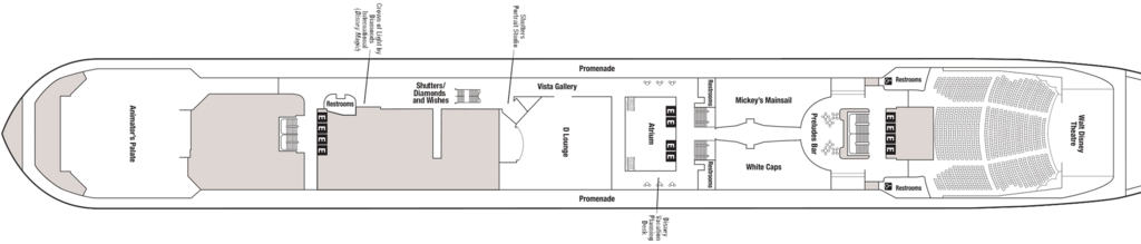 Sophisticated art deco décor incorporates original artwork, vintage Disney hallmarks, warm wood finishes with inlaid details, elegant furnishings and lavish marble-and-granite bathrooms to take your cruise to superlative new heights.