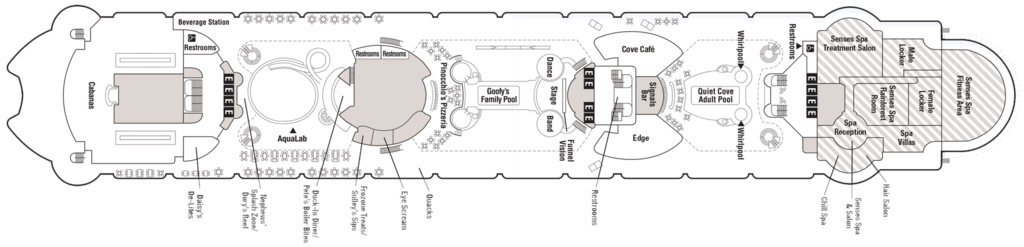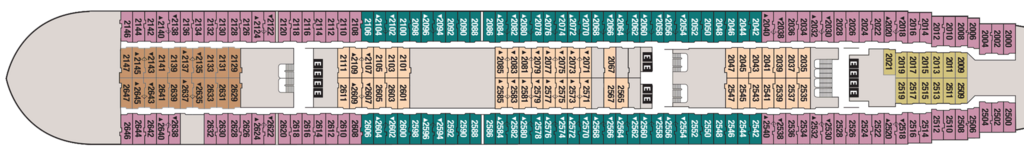 Rooms on Deck 2 offer Guests convenient proximity to shipboard restaurants and nightclubs while Decks 5, 6 and 7 are upper decks. Please note that Category 11C sleeps 3 only.