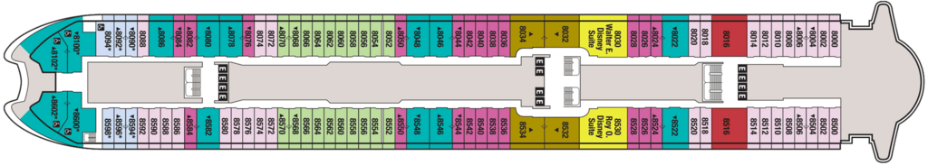 The Deluxe Family Oceanview Stateroom with Verandah is classified as Categories 4A, 4B and 4E and is located on Deck 8.