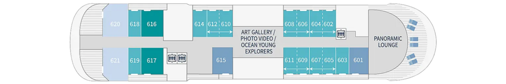 • Able to accommodate all our passengers at once for moments of shared conviviality, and as a venue for both daytime and evening shows and entertainment