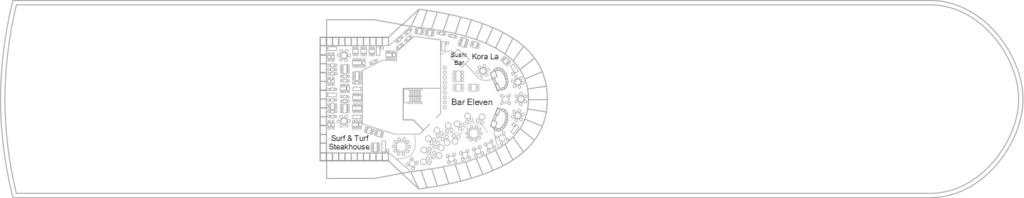 A position on the highest point on deck 11 – where the bar gets its name from – means that drinks in this lounge come with the ship’s best sea views. It’s a contemporary cocktail bar by evening, transforming into a late-night disco as the hours pass.