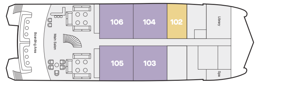 Smaller in size but featuring the same inclusions as the other suites, the pair of Single Bed Suites on the Main Deck are the perfect private retreat for solo travellers.