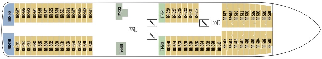 Larger cabins on middle decks. Most 20 square meters, flexible sleeping arrangements, some with sofabed, TV.