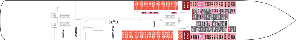 Perfect for families, most of these staterooms are near the kids’ area and include two single beds that convert to a queen and additional bedding that can accommodate up to three additional guests. Sleeps up to five.