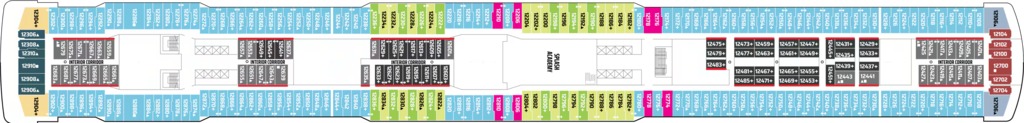 These staterooms include two lower beds that convert to a queen-size bed. Door opens to centre interior corridor for categories IA, IC & IF.