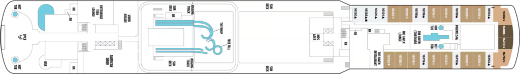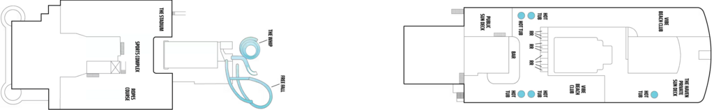 Seventeen decks above the sea, wind in your hair, sun on your back, ocean views all around, and before you – a stellar selection of liquid delights: five multi-story waterslides, two swimming pools, four hot tubs…more water than ever before. It’s a proverbial smorgasbord of aquatic opportunities.