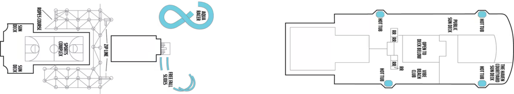 Grab an inner tube, find a challenger and get to racing at Aqua Racer. Scream all the way down as you take the plunge with Free Fall – the fastest waterslides at sea. Get the whole gang together and give the Family Slide a whirl. Or call it a lazy day and lounge by the pools and hot tubs with a frozen drink in hand. However you like to make a splash, Aqua Park is overflowing with ways to do so.