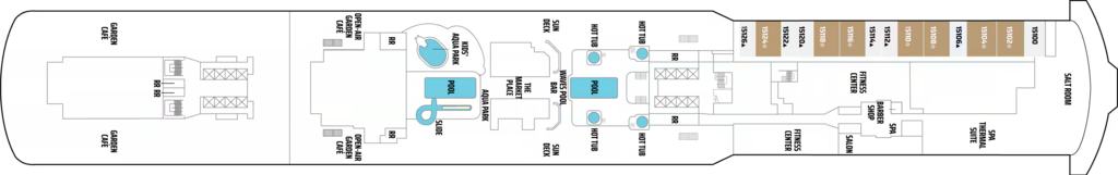 Get a birds-eye-view of the amazing vistas ahead from your floor-to-ceiling windows and the serenity of your private balcony. Desirably located forward on the corners of decks 9-13, these penthouses have exclusive key card access to The Haven Courtyard area, restaurant and lounge and 24-hour butler and concierge service. Featuring a king-size bed, luxury bath with bathtub and separate shower, living area with single sofa bed, dining area.