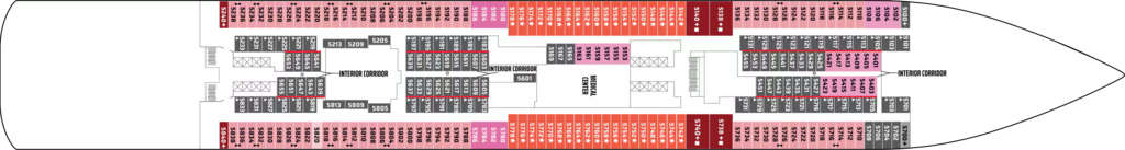 Private keycard access complex comprised of staterooms specifically designed and priced for the solo traveller. Featuring a full-size bed, a one-way window to the corridor, and separate areas for your bathroom, sink and shower, in 100 square feet of living space. Includes access to the private Studio Lounge. No single supplement required.