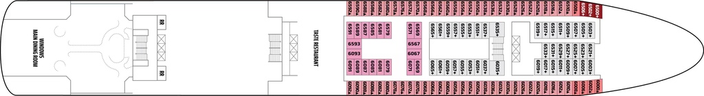 It’s located in the middle on the ship, where you’ll find the Main Reception and the Shore Excursion desk.