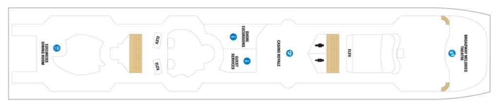 Enjoy daytime activities, including classes, game shows and more. Visit at night for dazzling entertainment and jaw-dropping aerial spectacles. Even the glass elevators facing into the Centrum feature LED panels down their entire length, providing a backdrop of moving visuals five decks high.