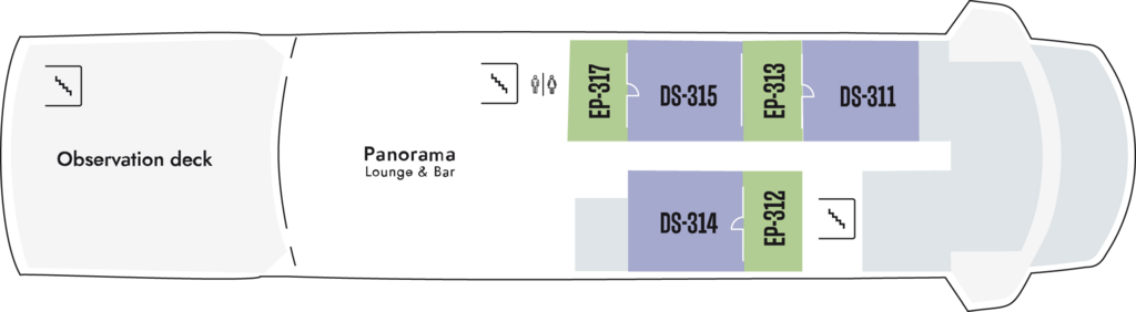 With a large window that illuminates the interior and allows you to take in the views as we cruise, these cabins offer an elegant and comfortable space to relax in after a day of active exploring. They feature a single bed, and all have private bathrooms with a shower and toiletries, as well as a safe and USA two-pin plug sockets.
