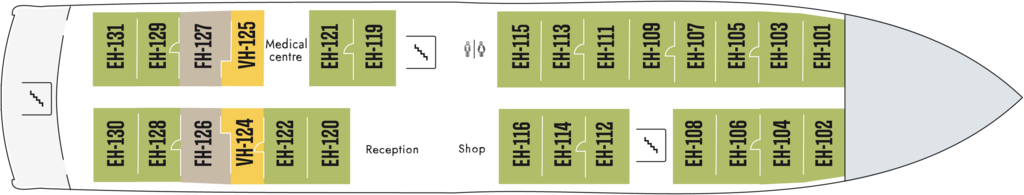Located at the main intersection on the ship, the reception is the place where you will find the central bulletin board with daily program and other valuable information on the expedition experience.