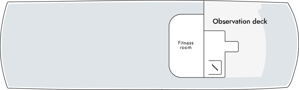 The Sky deck offers spaces where guests can relax and enjoy their Galápagos expeditions basking in the sun at the very top of the ship. The sun deck and fitness room are located here.