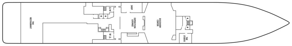 The space provides direct access to the Bow Sprit on Deck 6 forward (when conditions permit) to give guests the sensation of standing in front of the ship and views of waves parting and ice sloughing off the bow at the waterline.