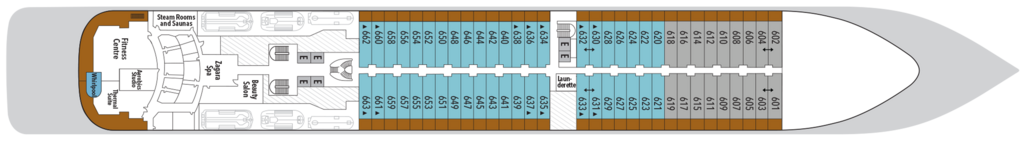 The epitome of open-air living—defining how you enjoy the outdoors—this is the place to cool off, unwind, and enjoy the sunshine. Take a dip in the pool, relax in one of the whirlpools, or simply soak up the view from one of the sun beds while your pool attendant anticipates your every whim. A little more ice? Certainly. A plush towel to dry off with? Of course. With breathtaking landmarks gliding by, dive into the clear waters in a setting that is so idyllic that you will not want to disembark.
