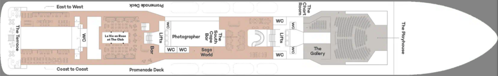 In the centre of the Promenade deck you can step into the world of Saga, without having to leave the ship. Meet and chat with our friendly consultant about Saga’s range of travel and lifestyle products.