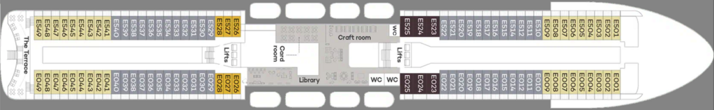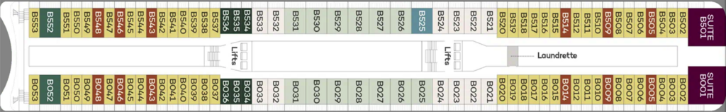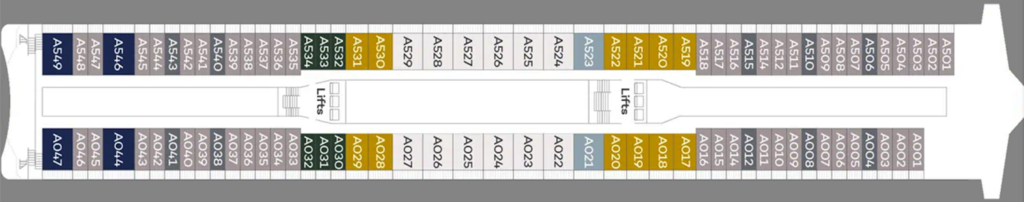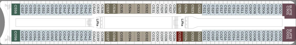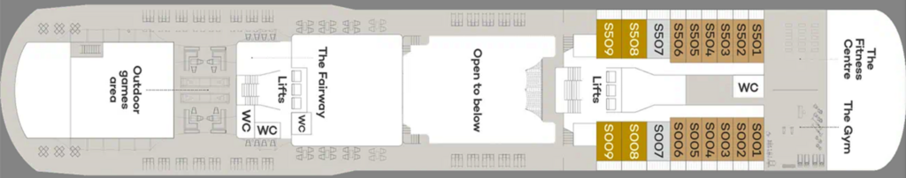 Offering more space with 25.5 square metres of accommodation and extra facilities including a walk in wardrobe, they are also higher up on the ship, for better views and access to all of the ship’s facilities.
