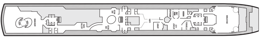 The Lido Bar serves the Lido Pool, midship on Deck 9, and the Seaview Bar serves the Sea View Pool towards the end of the deck. From either, you can enjoy a refreshing beverage poolside in shaded seating around the bar or delivered to your sunny chaise lounge.